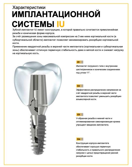 Конструкция корпуса имплантата обеспечивает хорошую первичную стабильность и правильного распределения нагрузки с целью предотвращения ранней резорбции кости.