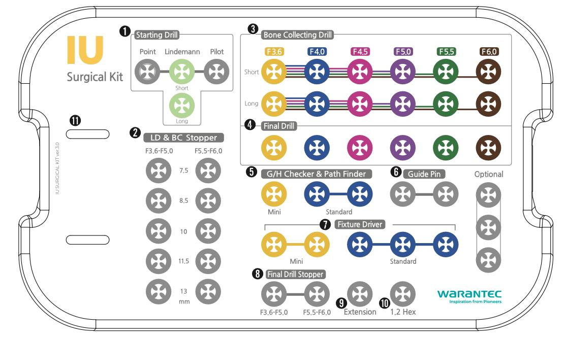 Правило: Всегда используйте ограничитель сверла (стоппер), который на одну ступень короче планируемой длины устанавливаемого имплантата (фикстура).